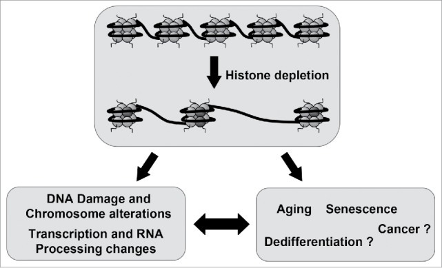 Disruption of histones could alter the patterns of histone modifications, resulting in aberrant epigenetic regulation and potentially contributing to diseases like cancer or developmental disorders.